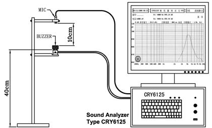 The oscillation frequency, current consumption and sound pressure are measured by the measuring instruments shown below