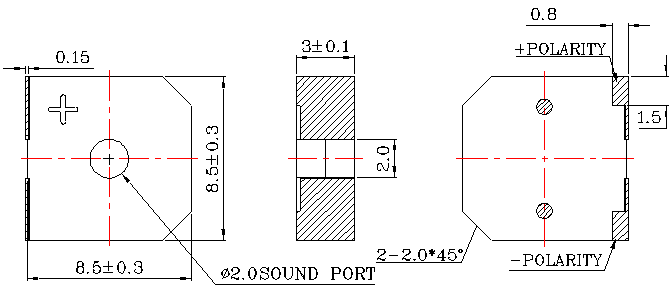 9 | Dimension | mm | 8.5 x 8.5 x H3.0 | See appearance drawing |