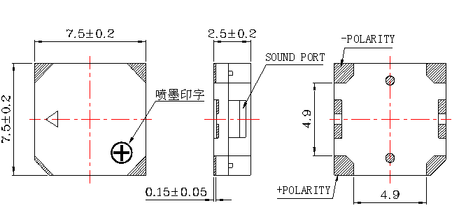 9 | Dimension | mm | 7.5 x 7.5 x H2.5 | See appearance drawing |