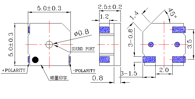 9 | Dimension | mm | 5.0 x 5.0 x H2.5 | See appearance drawing |