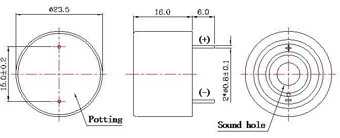 9 | Dimension | mm | Φ23.5 x H16.0 | See appearance drawing |