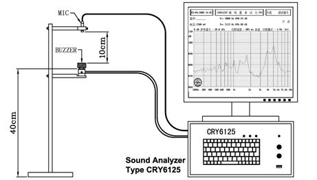 The oscillation frequency, current consumption and sound pressure are measured by the measuring instruments shown below