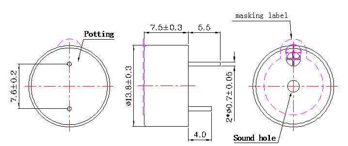 9 | Dimension | mm | Φ13.8 x H7.5 | See appearance drawing |