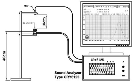 The oscillation frequency, current consumption and sound pressure are measured by the measuring instruments shown below