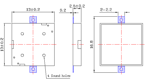 9 | Dimension | mm | 13 x 13 x H2.5 | See appearance drawing |