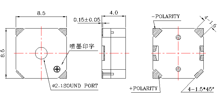 9 | Dimension | mm | 8.5 x 8.5 x H4.0 | See appearance drawing |