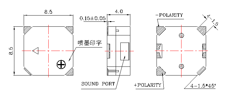9 | Dimension | mm | 8.5 x 8.5 x H4.0 | See appearance drawing |